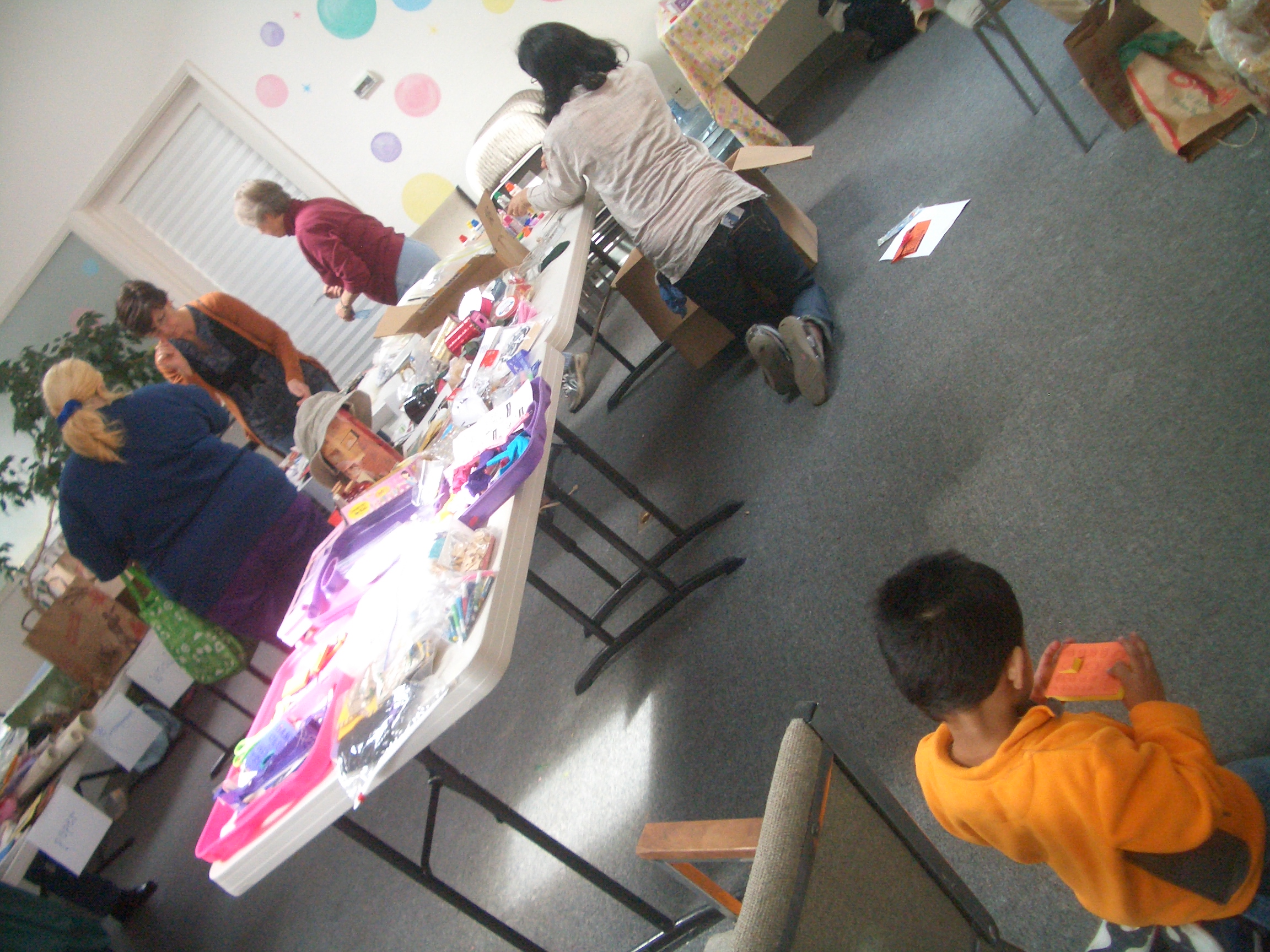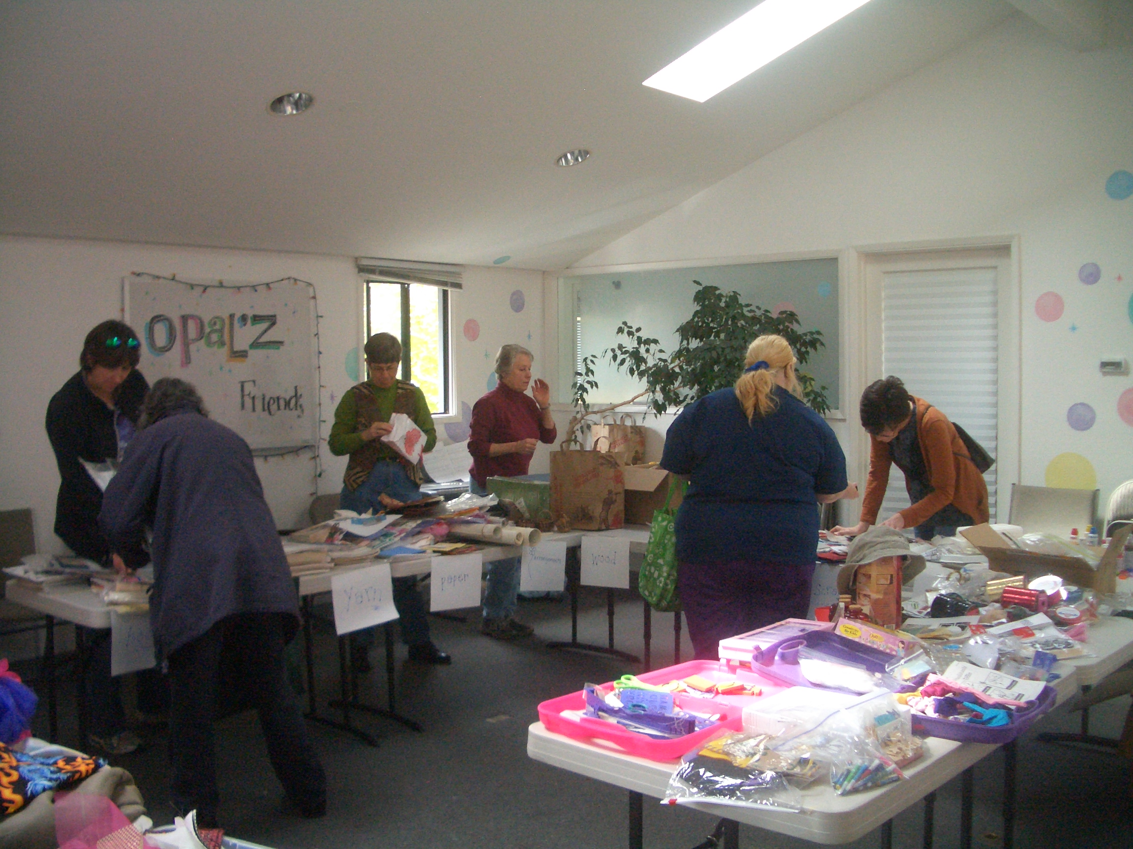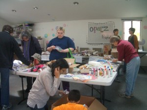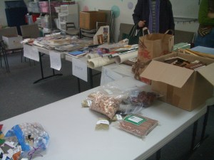 The second-ever Transition Palo Alto Craft Swap took place in Palo Alto this time, upstairs at the lovely Opal’z store, filled with the fragrance of essential oils and soap. We arrived, arms full, and set up on the U-shaped tables. People arrived early, helped sort things into the categories. We found that there were lots of things that didn’t fit into the regular categories, and lots of things that already looked interesting.