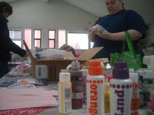 We had everything from kids’ kits and yarn to wood pieces, beads, stamps, botanicals like henna and cinnamon, carpet and fabric pieces, sewing patterns, cross stitch kits, books, stickers, jewelry, hand-looms, embroidery, wallpaper and other papers, containers and boxes, brushes and paint, and so much more.