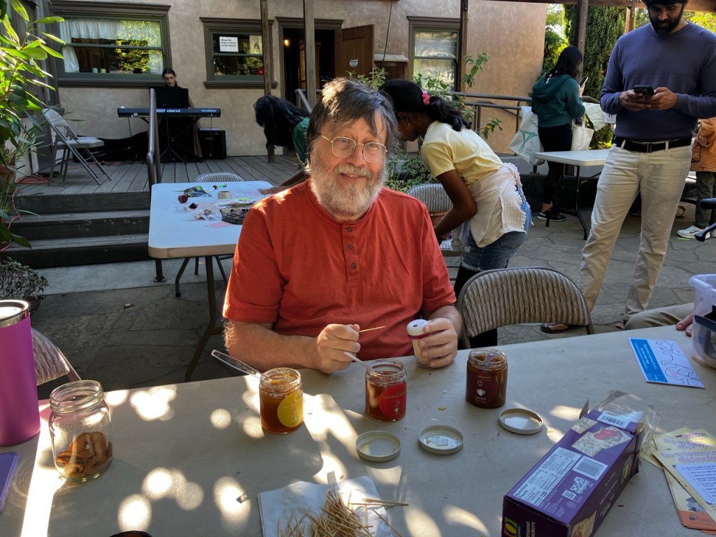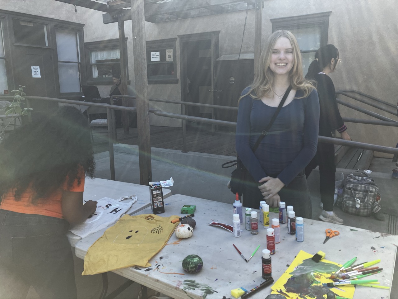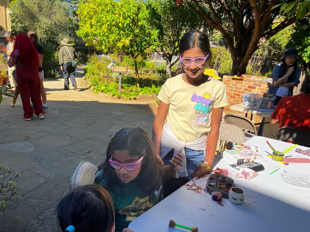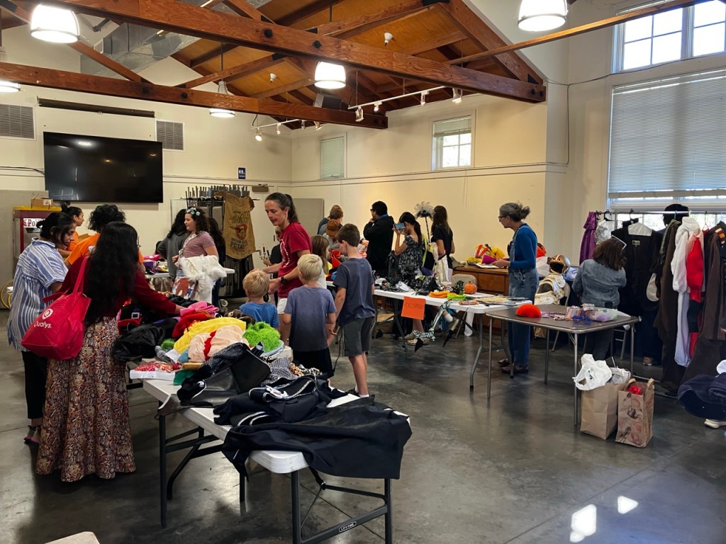 Thank you to high school students Aiden and Elsa (and others) from YCAB (Youth Climate Advisory Board) for their poster and hosting the pumpkin and bag-making tables. Thanks to middle schoolers Shreya and Reya from YCS and their mom Radhika, along with Wendy Breu for their incredible hard work setting up the costume swap (hundreds of costumes and fabrics!). Thanks to Andrea, Sumita, and Sue, who chipped in in many ways and set up signage so it was clear and bright. Shreya and Reya painted faces, set up the hanging rack, and helped clean up the inside room. Greenwaste’s trash sorting game was super popular. Milo’s piano music set the mood beautifully and kept people coming in. Peter’s welcome table was also sweet. Thanks to Emma, Lauren and everyone at MoAH for their help, clean up, set up and space and materials, plus their beautiful museum and garden – year after year.