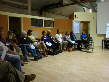 It starts with everyday frustrations, such as the distractions of an interrupt-driven lifestyle, hidden fees and penalties from banks, and 40 minutes on the phone trying to cancel a DSL service. It gets worse. Six people in the room have no health insurance, and one gave up in frustration trying to get through the process of comparing plans. A brother in law was laid off at age 65 just as he was asking for time off for surgery. One participant attributes a huge rent increase to a landlord trying to recoup his stock market losses. Another person had a 53% rent increase in January. A sister with a ten-year-old daughter has been homeless for three years, making her way through the shelter system and relying on the generosity of friends. Another woman volunteers for a rotating shelter at her church. After a series of job losses, a sister who started out as an Executive Director of a San Francisco non profit has given up on having a professional life in the US, and is now working in Afghanistan. A friend is living in a truck in the parking lot where someone works. Financial stress is forcing one woman to sell her house, which she characterizes as “her paradise.”