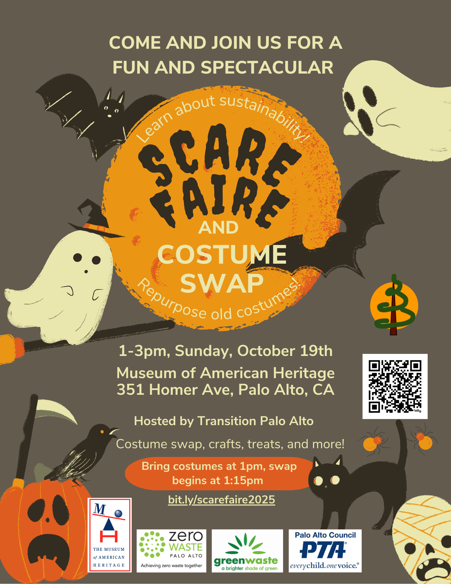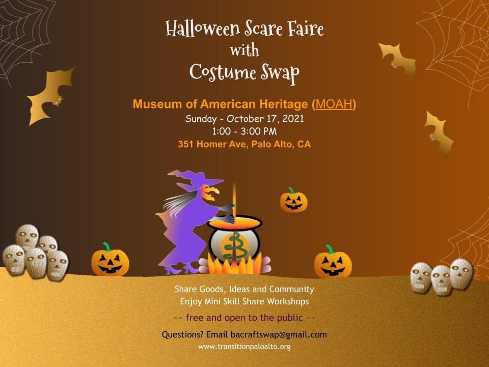 While you’re waiting, check out our Scare Faire – a traditional Transition Palo Alto Share Faire with some Halloween twists.  Learn a skill, find something in need of a home, meet your neighbors, have some fun.